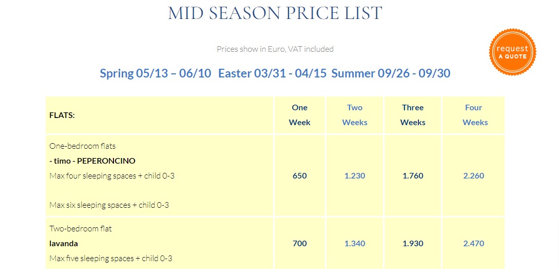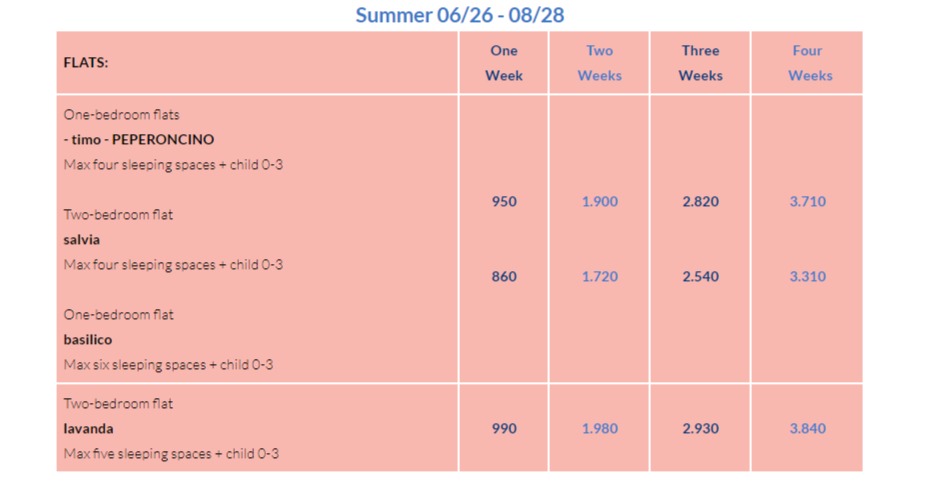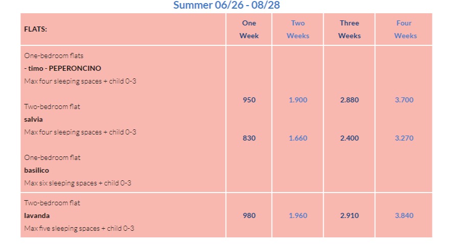 - mandatory end-of-stay housekeeping HACCP-compliant; One-bedroom Euro 80